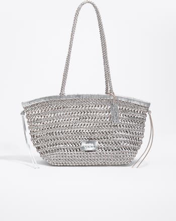 Large shopper bag crafted in plaited leather with a structured design. Features double shoulder straps, leather detailing, and a leather BIMBA Y LOLA logo label. Approximate measurements: 41 x 23 x 15 cm