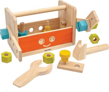 Little ones will adore tinkering with this wooden playset that includes plenty of tools and widgets to encourage fine motor skills. Flip the tool box upside down to transform it into a robot and carry it around with ease thanks to the attached handle.