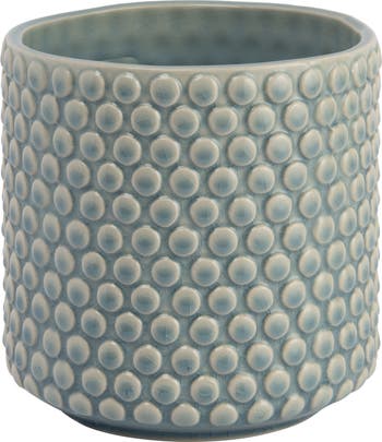 Plants show off in this stoneware planter pot with a polka dot. This planter pot has a fun and playful design that features a sky blue color and a polka dot pattern. The planter pot is made of stoneware, a type of clay that is known for its durability and quality. The planter pot is designed to hold a 5-inch pot, and it has a glazed inside that can hold water and prevent leakage. This makes it ideal for indoor or outdoor use, and for plants that need regular watering. The planter pot measures 6 inches in diameter and 6 inches in height, and it can brighten up any space. This stoneware planter pot with a polka dot is a cute and cheerful piece of pottery that showcases plants and style.