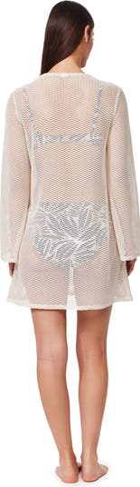 Float into breezy tropical vibes with the Plantopia Crochet Mini Dress Cover-Up, a delicate cream crochet piece designed to layer effortlessly over any of our swimwear. Featuring a flattering V-neck keyhole design with a subtle matte gold insert, long sleeves for light coverage, and a flirty mini length, this cover-up is perfect for beachside strolls or poolside lounging.