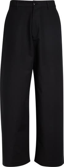 These wide-leg pants are crafted from double-weave cotton sateen that has substantial weight and smooth luster. Triple-needle topstitching and a burnished leather patch at the back waistband bring a rugged element to the look.