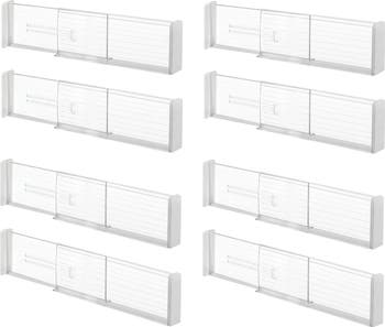 Divide and conquer drawer clutter once and for all with our iDesign Set of 8 Adjustable Drawer Dividers. Designed to accommodate deep drawers, these drawer dividers are higher than your standard drawer dividers, helping you to create instant visibility and eliminate rummaging. Each divider adjusts to fit inside your drawer and locks into place by simply lifting the lever for a secure hold. Use separators to create compartments in unruly drawers by sorting large utensils and small gadgets in the kitchen, toiletries in the bathroom, clothes in dresser drawers, or hobby or work supplies in the office. With iDesign, you can live simply every day.