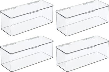 These Bathroom Storage Organizer Boxes by mDesign make it simple to store and organize all of your health and beauty items. Stack to create vertical storage and take advantage of unused space. Transparent colors make it easy to see what is stashed inside and quickly grab what you need. Keep hair styling tools, lotions, shampoo, conditioner, masks, cotton swabs, and other supplies neatly stored in a see-through bin that offers quick access anytime. The compact size is ideal for any room in the house. These bins feature a hinged lid to keep everything inside and contained. Its stacking feature allows you to stack multiple bins to make stashing toys away easy and convenient. Mix and match with other mDesign bins to create a custom storage solution for your home. mDesign - Solutions for Home. Solutions for Life.