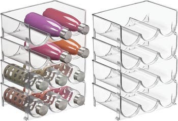 This Stackable Bottle Holder by mDesign creates organized kitchen cabinets, refrigerators, pantries, and garage shelves. These durable organizers keep sports, water, juice, or wine bottles in place and ready for use. Stack multiples to create a custom, vertical storage unit, or use them in different rooms in the home. Curved compartments keep each bottle separate and organized, while the open top and front make it easy to grab a bottle right when you need it. modern living by Design.