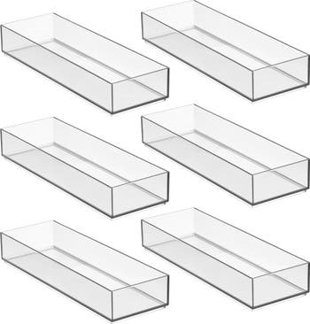 - EASY ORGANIZATION - Tackle challenging drawer clutter for good with our iDesign Plastic Drawer Organizers; These organizer trays fit neatly inside standard-sized drawers, creating a concealed storage solution for your most reached-for essentials--from makeup brushes to jewelry and more; Set of 6