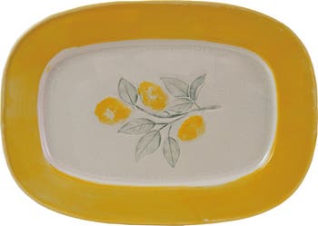 This Stoneware Plate with Lemons, featuring a reactive crackle glaze in yellow and green, is a delightful addition to any home. Crafted from durable stoneware, this oval plate showcases a vibrant lemon design, making each piece unique due to the reactive crackle glaze finish. Perfect for country, cottagecore, farmhouse, or French country interiors, this plate is ideal for serving meals or as a decorative piece. This plate combines aesthetics and functionality, measuring 14 inches in length and 8.75 inches in width. Whether used for everyday dining or special occasions, this stoneware plate impresses guests with its charming design. Elevate the table setting with this eye-catching piece that captures the essence of rustic elegance.