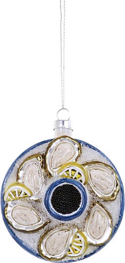 Seafood fans will savor this exquisitely detailed glass ornament garnished with glitter.