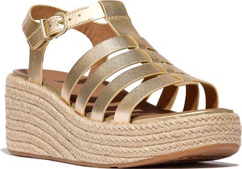 Modern and refined, the FitFlop PlatFForms are possibly the world’s most comfortable high heels. Soft, light, superbly cushioned. This chic espadrille fisherman-style heel teams a strappy raw-edge upper with a classic high-wedge sole, wrapped in natural jute for summery vibes. Crafted in a richly toned luxe leather with a curvy, brushed-metal buckle to adjust the fit, sleek leather footbeds are perched on the brand's CushX™ midsole, biomechanist-designed for sneaker-level comfort in a heel.