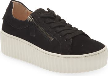 Asymmetric side zippers and a lace-up vamp lend easy wear and street-savvy style to a low-profile sneaker set on a chunky platform sole.