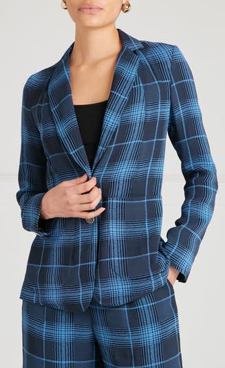 Rendered in striking check, this suit jacket features broad lapels and softly flared sleeve heads for an effortless elegance. Wear with the matching Plath Trousers for a sharp silhouette, or layer over the Plath Dress as a statement piece.