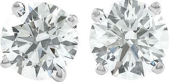 This classic matching pair of studs features 2 round brilliant cut lab grown diamonds. Both diamonds are prong set in solid 950 platinum findings. 1.50ct total diamond weight. Each earring is secured by 950 platinum screw backs.