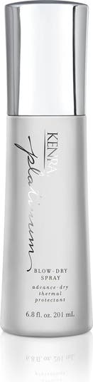 - Kenra Professional Platinum Blow-Dry Spray reduces blow-dry time by up to 50%. It provides thermal protection up to 428F (220C) and is ideal for medium to coarse hair.