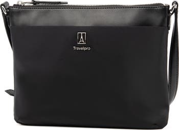 Manage your daily errands with elegance with the Platinum Elite Womens Crossbodyyour go-to bag for keeping all of your essentials conveniently at hand. Crafted from moisture-resistant and stain-resistant materials, this durable yet stylish bag features genuine leather trim and a genuine leather shoulder strap that adjusts to suit your ideal length. The sleek design also packs multiple pockets inside and out, including an exterior Travelpro QuickSlip pocket with magnetic closure, ideal for cell phone storage on the run or while going through airport security. Great on its own or to coordinate with the Platinum Elite Womens Brief or Backpack, this Crossbody is sure to be your new favoriteevery day and while traveling. Backed by the Travelpro Built For A Lifetime Limited Worry Warranty and Trusted Companion Promise.