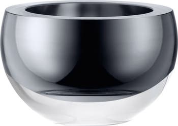 Elevate your table setting with this small glass serving bowl in a modern silhouette with a hand-painted platinum interior for a chic look.