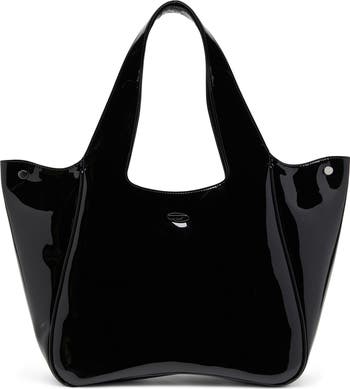 The curvy Play silhouette is rendered in ultra-glossy partially recycled polyurethane in an ample size that holds a laptop along with everything you need for the day.
