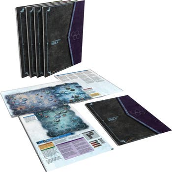 Inspired by the critically acclaimed play surface books from Gloomhaven: Jaws of the Lion, this set of 4 Scenario Play Surface Books eliminates the need for your Frosthaven map tiles & the majority of overlay tokens in favor of quicker and easier setup times. Just open the books to your scenario and start playing! Includes scenario narrative text and special rules for all 138 Frosthaven scenarios! Includes 4 Scenario Play Surface Books, 96 pages each and 20 "Destroyed" obstacle tokens. *ACCESSORY ONLY. REQUIRES A COPY OF THE FROSTHAVEN BOARD GAME TO PLAY.
