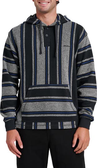 Perfect for chilly mornings and beach bonfires, this surf-style hoodie is made from soft French terry with a henley placket, yarn-dyed stripes and a boxy fit.