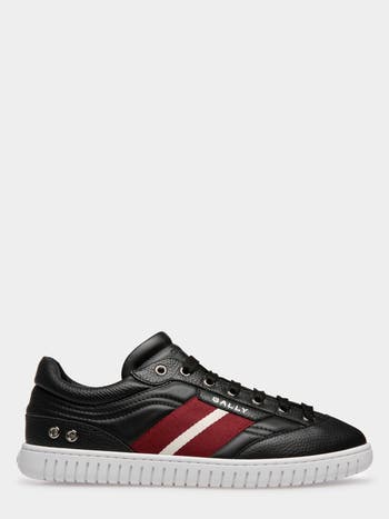 Crafted from premium black leather, these sneakers feature a sleek silhouette and a comfortable rubber sole for effortless style and all-day comfort. A Bally stripe and maxi palladium eyelets express their originality.