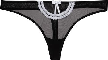 Channel your inner French maid in this mesh thong detailed with delicate lace and a dainty bow.