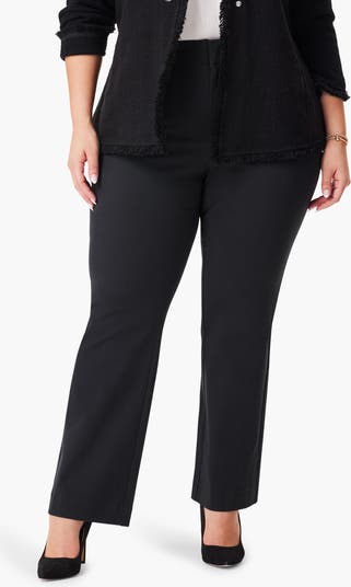 Fashioned with a demi-bootcut silhouette, these high-rise pants with a streamlined flat front are a mainstay for professional ensembles.