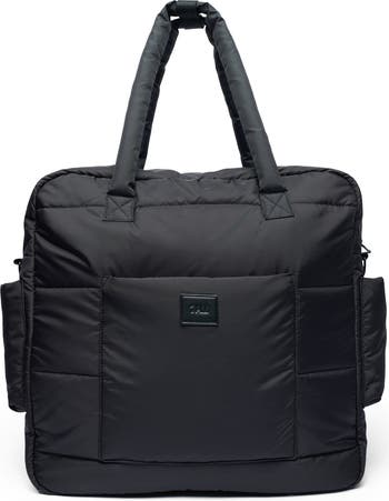This throw-in-everything carryall with a square shape is the perfect travel accessory or diaper bag.