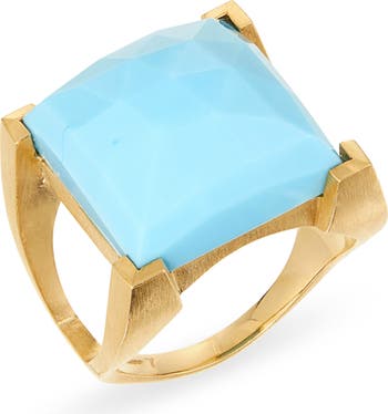 Hand-cut sky-blue turquoise adds a dreamy burst of color to this statement signet ring featuring a cutaway band plated in 22-karat gold.