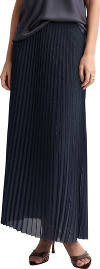 A sparkling design adds bold contrast to this flowy A-line skirt textured in accordion pleats and cut to a midi length.