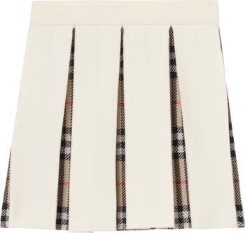 A two-tone wool blend skirt knitted in a seasonal ivory colourway. The underside of the pleats reveal a pop of Burberry Check in our signature sand beige. The rib-knit waistband is elasticated for a comfortable fit.