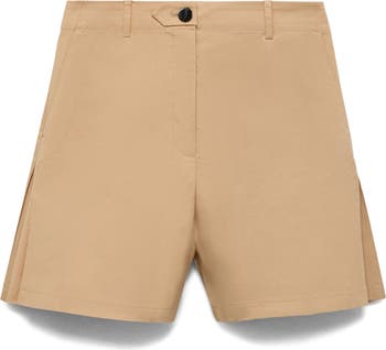 A flat front and straight-leg silhouette make an instant favorite of shorts cut from a soft cotton blend with side pleats for easy, comfortable movement.