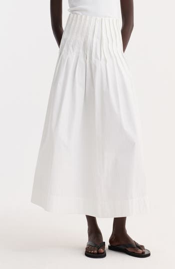 Crisp pintucks release more volume into this cotton-poplin A-line skirt that marries structure and tactile richness in a simple yet expressive design—hewing true to Róhe’s rewritten definition of elevated minimalism.