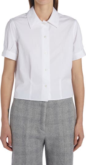 Pleated Cotton Poplin Button-Up Blouse