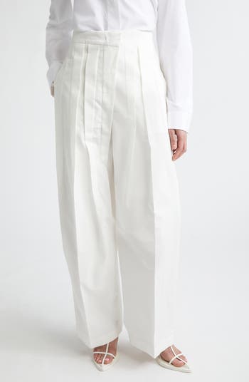 Minimalist on the surface, nuanced in the cut, these silk-enriched cotton pants lean into restraint with Jil Sander's distinct sense of proportion. Crisp pleating releases more volume into the already relaxed silhouette, while the low waist and slightly dropped crotch shift the feel from strict tailoring to laid-back luxury.