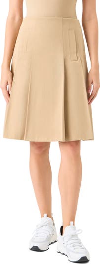 Inverted front pleats add volume to the A-line silhouette of a wardroble-staple skirt sewn from cotton twill in a versatile neutral hue.