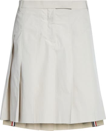 Tricolor grosgrain trim brings signature Thom Browne flair to this school uniform-inspired pleated skirt cut in the label's iconic drop-hem silhouette from cotton twill.