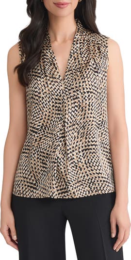 Enjoy the versatility of this matte-satin shell top with gathering at the shoulders and a pleat in the front to create perfect drape.
