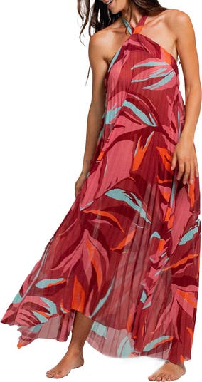 Pleated Halter Cover-Up Maxi Dress