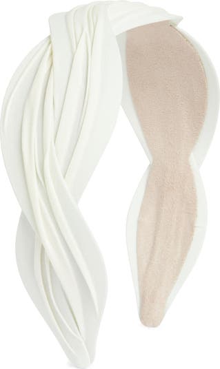 Secure your tresses—and add a pretty flourish—with this twisted headband wrapped in soft pleating.