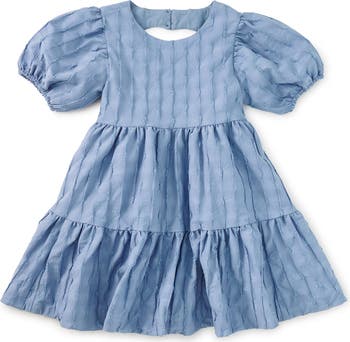 A charming dress with a surprise detail in back. This special-occasion--ready style features a softly structured bodice and a full, swishy skirt made for twirls and celebrations. The standout heart-shaped back cutout adds a playful, unexpected touch, while gently puffed sleeves bring a bit of drama without sacrificing comfort. Crafted from textured jacquard with a beautiful drape, it's an easy choice for parties, family gatherings, and moments that call for something a little extra. Thoughtfully designed to feel as good as it looks, it's polished yet comfortable enough to enjoy all day long.