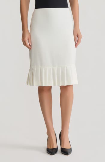 Sharp pleats add swingy movement at the hem of this sophisticated pencil skirt made from a stretch-eased crepe.