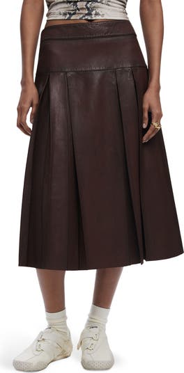 Sharp pleats enhance the texture and flared silhouette of this midi skirt elevated in rich leather.