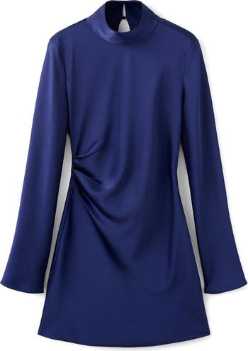 Soft pleats enhance the texture and shape of this mock-neck dress cut from rich satin.