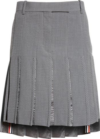 Pleated Low Rise Wool Seersucker Skirt