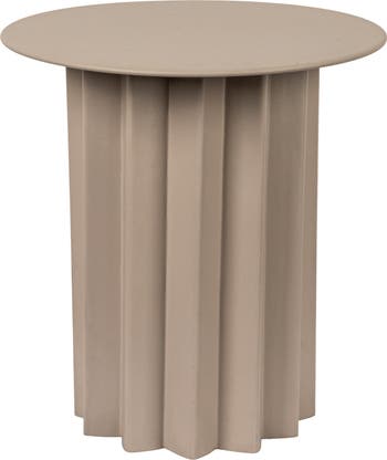 Add a touch of modern to your space with the Pleated Metal Side Table. Featuring a subdued beige finish and a unique pleated design, this table is both a functional piece and an artful statement. Its round top offers ample space for decor, books, or a cup of coffee, while the sturdy metal construction ensures durability. Perfect for contemporary or modern interiors, this side table brings elegance and texture to any room.