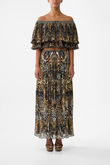 Inspired by the majesty of the animal kingdom, the Feline Folklore Pleated Midi Skirt is a handcrafted silhouette designed by our in house artisans. Reimagined in an exclusive limited edition print, this pleated skirt is relaxed fitting and falls to a midi length hemline. It features a waist tie with CAMILLA tassels and charms on the tie ends and is finished with lining for effortless wear.