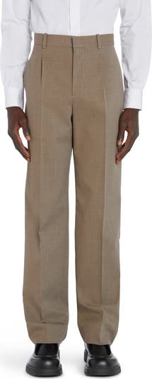 A high waist emphasizes the streamlined profile of dress pants tailored from softly brushed wool twill with crisp knife pleats smartly detailing the front.