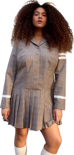 - Turn heads in this pleated plaid mini dress that balances classic tailoring with playful movement. A dropped waist and varsity-inspired stripes bring modern, standout appeal.