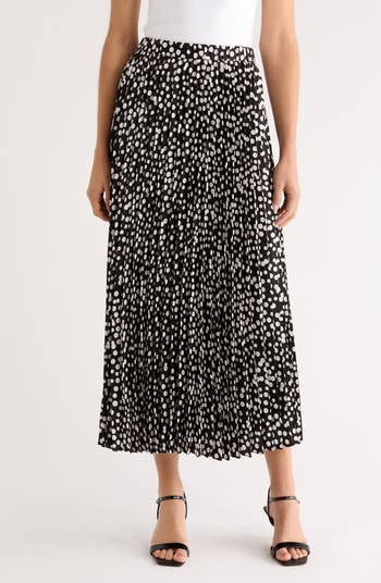 Allover polka dots give this pleated skirt a playful pulse, while the fluid fabric keeps the silhouette light and airy. An elastic waist tops it off with wear-anywhere ease, no fussy closures required.