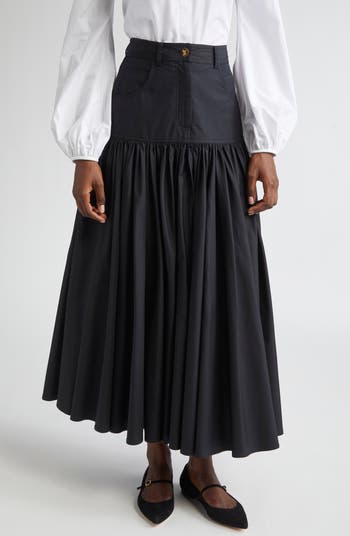 Capturing the 'Very Valli' collection's inventive juxtapositions, this midi skirt teams texture and shape to attention-getting effect with a fitted denim beginning that gives way to a voluminous poplin panel wrapped in crisp pleating.