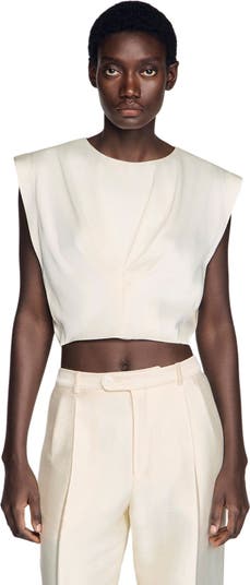 - Sandro Women's plain satin-effect crop top