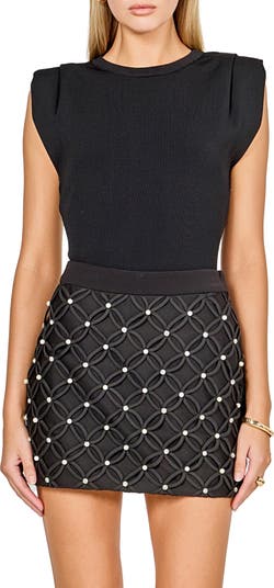 Pleat-trimmed shoulders create a strong silhouette on this light and soft knit top.